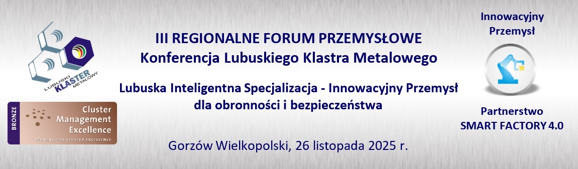 Lubuski Klaster Metalowy wraz z Kostrzyńsko-Słubicką Specjalną Strefą Ekonomiczną zaprasza na III Regionalne Forum Przemysłowe, które odbędzie się 26 listopada 2025 r. w godz. 11:00–15:00 w Biurze Zamiejscowym Urzędu Marszałkowskiego Województwa Lubuskiego w Gorzowie Wielkopolskim (ul. Franciszka Walczaka 42, bud. 13).